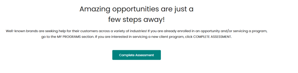 Once you complete the Assessment, you will be able to select the available opportunity (including your background check and system check).